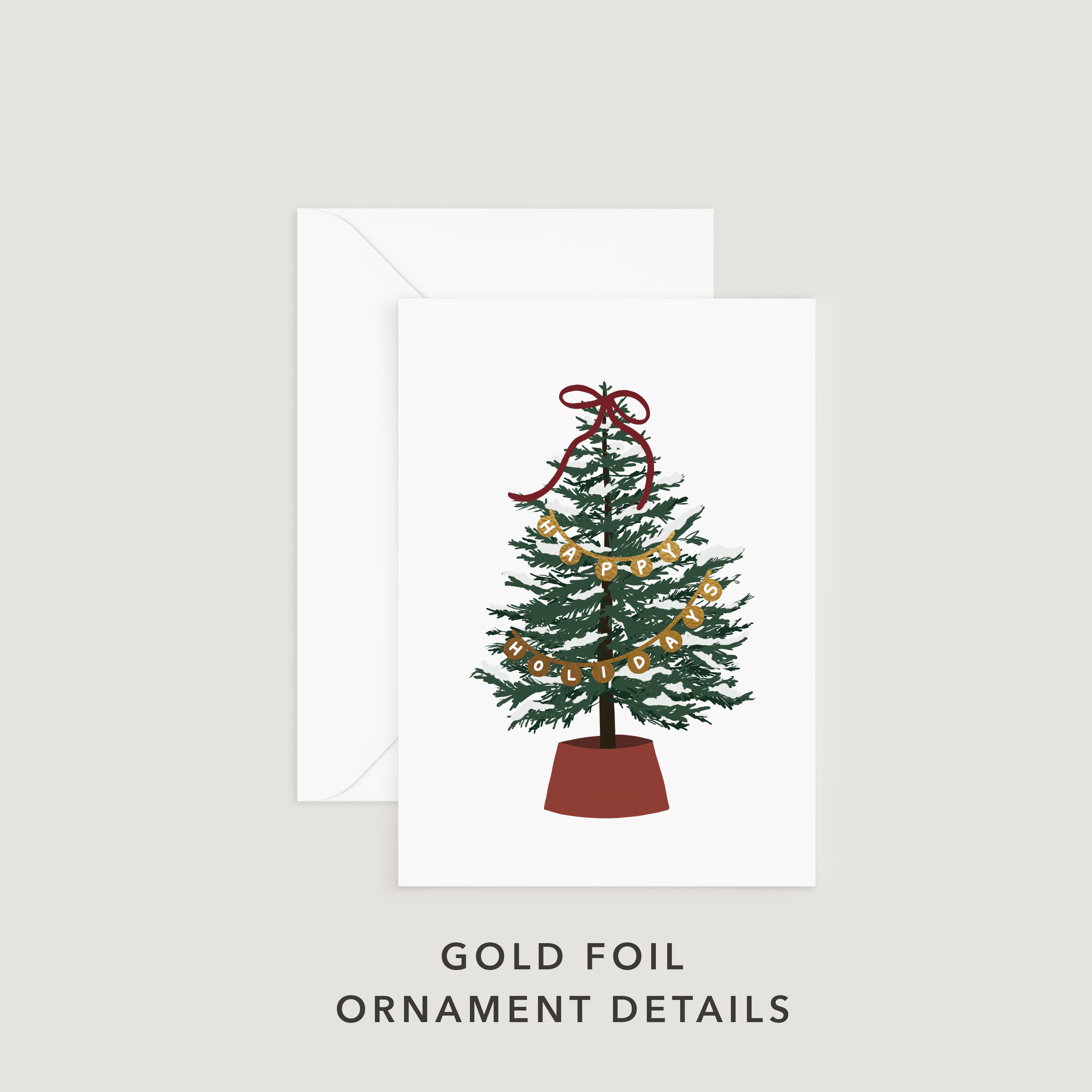 Gold Foiled Greeting Card, Happy Holidays Pine